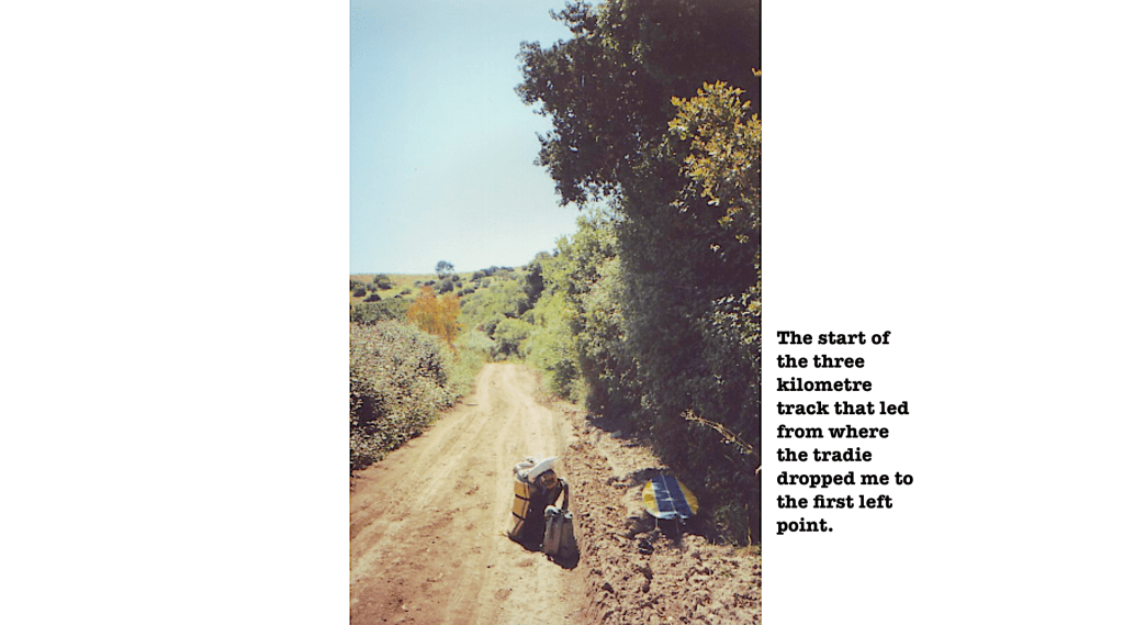 Still, if push came to shove, I could trek the ten kays or so of the access road in three to four hours. Once back in the outside world, I could walk until I hitched a ride or found a bus back to the highway. And, despite all that had happened, it wasn’t yet ten o’clock, so I had a couple of hours to rest, eat the last of my food, and try to dry my stuff. I stripped down to my boardies and a singlet, hung my tent, towel, clothes, wetsuit and sleeping bag on the all-purpose rope I always carried, and brewed up some porridge and a nice cup of instant coffee.