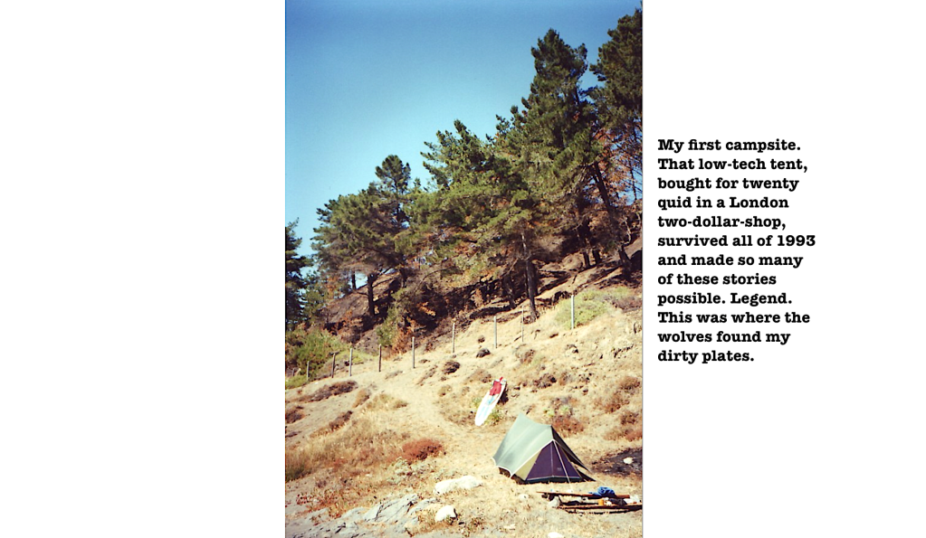 These had been as great a few days as I could’ve imagined when I’d set out on this trip eleven months before. Thanks to one heroic tradie, I’d dodged the ban on surfers I hadn’t even known about and got access to this idyllic, privately-owned corner of the coast. Here I’d surfed some of the most memorable waves of my life, all alone, in perfect weather for three days. There was so much to alchemise into written words that I hadn’t finished before the first hints of a daunting grey dawn started to show. It was time to get started. I packed my last few things and unzipped the front panel.