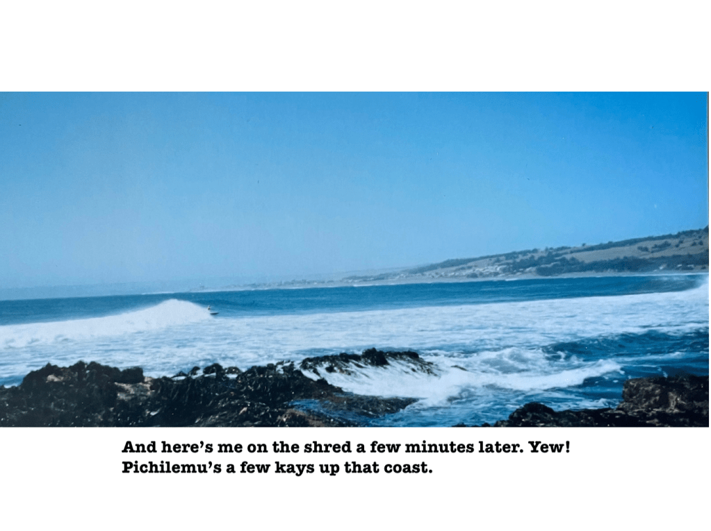 My second last day in Chile began with breakfast at Dario and Maribel’s, then a short walk to meet the early bus back to the main road. From there I took another bus to backtrack sixty kays south to a great little seaside village called Pichilemu. I’d come here with Sunara for the last days of our two-month, eight-thousand-kilometre journey from Cusco, Peru, through Bolivia, then through Chile from the Atacama Desert to Patagonia and back.