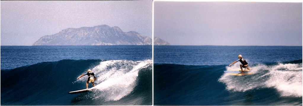 These weren’t the most perfect waves I surfed in 1993, but the company, environment and atmosphere put them right up there with the most memorable. I learned the other surfer’s name was Phil Treibel from California – I’d seen pictures of him in American surf magazines – and he was on his honeymoon.