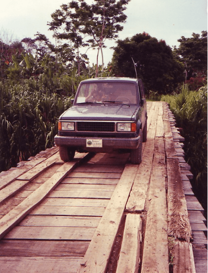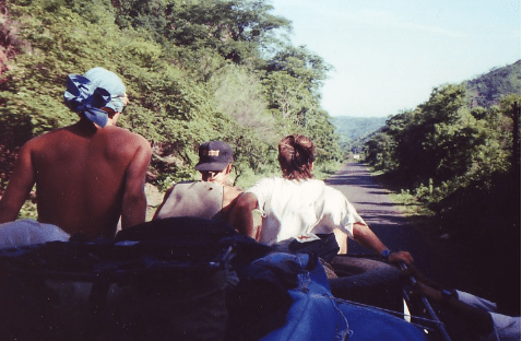 An hour or so later, despite the continuing rain, there came the sound – could I believe my ears? – of a heavy truck lumbering toward the crossroad. As it appeared through the trees, I ran a muddy fifty metres to the road as it appeared through the trees and screeched to a stop. Si, seguro, they were heading out in five minutes and si, seguro, I could hitch a ride. Yeehah! I threw my quarter-dry stuff together in record time, roped it to the empty trailer, and took the place I was offered in the middle of the cabin’s bench seat. Vamonos! Let’s go!