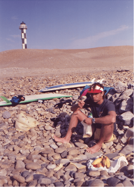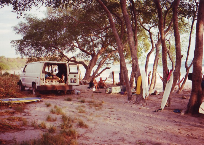 After a couple of hours, we paddled about half a kilometre across the lagoon to the hotel where he was staying in a room built above the water. From there he gave me a ride on his moped to save me a long barefoot walk on the hot roads back to my campsite. I arrived home, eyebrows crusted with salt, surfboard under my arm, on the back of a champion surfer’s bike, feeling like a king! Cheers, Phil!