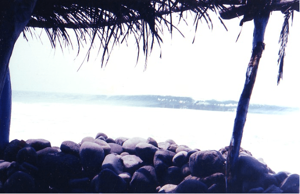 The next morning, I found the backpack was still lost and probably would be for some time. With the ubiquitous ‘have a happy day!’ smile, the airline staff gave me a cheque for fifty US dollars to spend on ‘essentials’. But that didn’t cover the cost of last night’s hotel, and it didn’t cover the cost of a taxi ride across to the surf coast of the island. So in the rising heat of a blue-skied day, I walked a couple of kays from the airport and waited an hour or two to hitch a ride.
