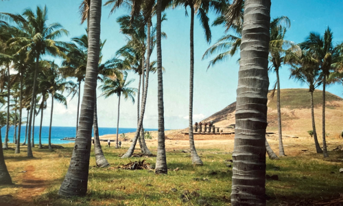 The five-and-a-half-hour night flight from Santiago landed in Easter Island around midnight. Among the handful of people collecting their luggage were Tim from England, and Ninette and Lena (Laynah) from Denmark. We were the only backpackers on the flight and we shared the backseats of the minibus that took us from the tiny airport to the island’s simplest and cheapest accommodation, ‘Anna’s Place’. Here I could pitch my tent in the garden for just a few dollars a night.