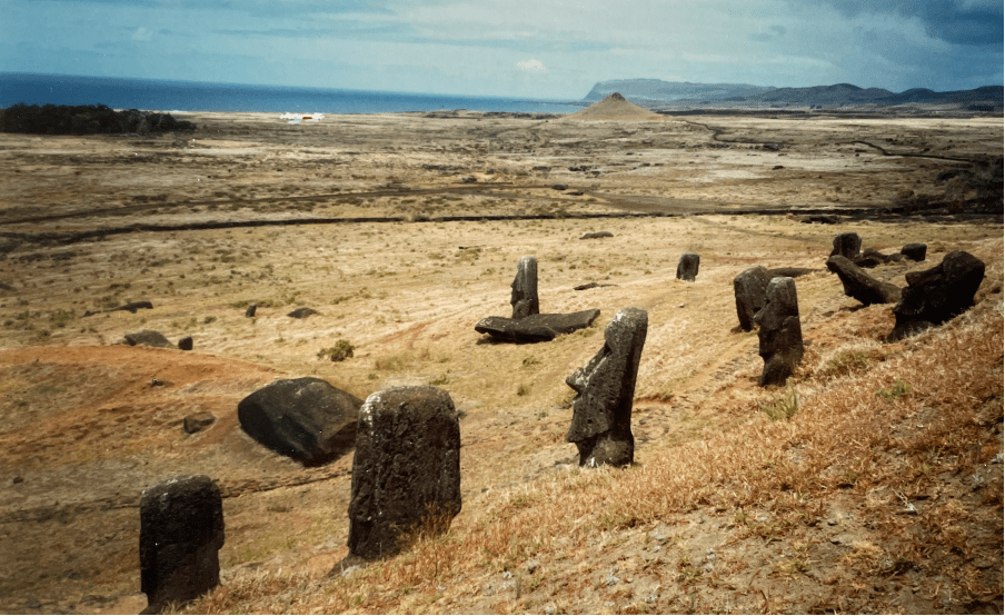 In the morning we teamed up to hire a car for the day. As a case study in human behaviour, Easter Island must hold the world record for the most enigma per square kilometre. Where, exactly, did the island’s first human inhabitants come from? Why, and how the hey, did they get here in tiny boats about a millennium ago using only seabirds and the sky to navigate? Why did they carve over a thousand huge stone heads-with-truncated-torsos and place them on the fringe of the island, with all but one group staring out to sea? How did they transport these twelve tonne heads five to twenty kilometres from the quarry to the coast? Why did they turn what was once a paradise of palm trees and birdlife into a lunar landscape when they must have known they were destroying their means to survive? And, surely, they must have made contact with the Inca and other South American peoples. If they could navigate to and from the tiny, lonely dot of Easter Island, they must have continued on to the west coast of South America. And, to my amateur eye, the stonework in at least one of the platforms built for the stone heads seemed too similar to the stonework I’d seen on the Inca Trails to be coincidental. Is there any evidence of Polynesian DNA in South America, or vice versa? Anyone? Anyone? Our day bumping around the island’s rough dusty tracks was a truly-once-in-a-lifetime-experience.