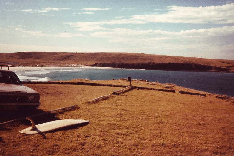 John caught me up with a lot of the Australian bands I hadn’t yet heard: The Cruel Sea, Celibate Rifles and the Died Pretty, among others. When his mate arrived from Australia with gifts of Tracks (surfing) magazines, Tim Tam biscuits and Three Threes pickles, John shared the precious treasure with all of us. On the other side of the ledger, like a true Aussie, he didn’t hold back when I thoughtlessly caught the cracking left at Apple Bay he’d waited an hour for. Then when I suspended myself from surfing the next day, he told me to get over it and get back out there. His girlfriend, Nancy, was a New Yorker who tolerated me for weeks and treated me like family when she cooked great meals. She also guided me to the island’s only clothing shop where I spent the airline’s emergency fifty bucks on the the bright-yellowest, most expensive, pair of boardies I’ll ever own. They were two sizes too big, meaning my bottom turns had two meanings from then on.